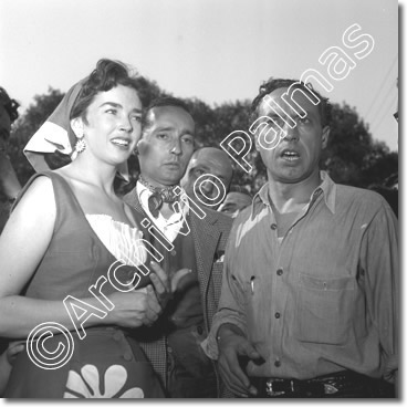 Joe DiMaggio, giocatore di baseball, Doris Lilly, giornalista e scrittrice americana, Dawn Addams, attrice americana - Venezia, agosto 1955, Festival del Cinema