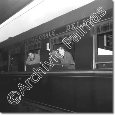 Federico Fellini, Italian director, Giulietta Masina, Italian actress - Rome, 5 December 1954, Termini railroad station Vedi anche foto di - See also photos of Directors (208), Fellini Federico (51), Masina Giulietta (20), Registi (208), Stazione Termini Roma (12), Trains (12), Treni (12) |