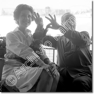 Mike Bongiorno, presentatore, Fiorella Mari, attrice - Fregene, 25 luglio 1956