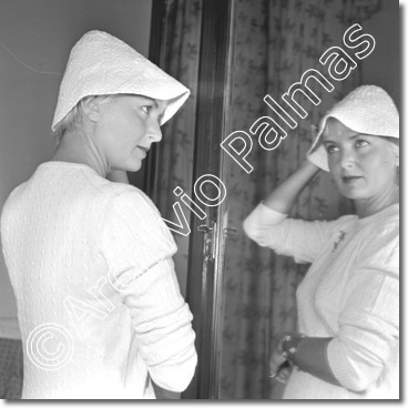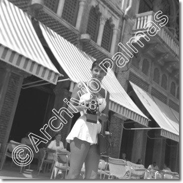 Alda Amadori, moglie di Giuseppe Palmas, giornalista e fotoreporter - Venezia, agosto 1955, Festival del Cinema